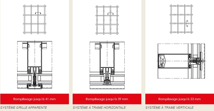 Le système de trame horizontale permet d’apporter un design épuré, avec une large surface vitrée. Plusieurs typologies d’ouvertures sont disponibles, avec notamment le système d’ouvrant à l'italienne.