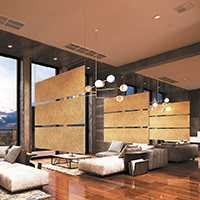 Organic Claustra, pour une séparation esthétique des espaces, doublée d’une absorption acoustique idéale Baffle acoustique rectangulaire sur câbles, superposable et modulable, Organic Claustra séduit d’emblée par l’étendue de ses possibilités.