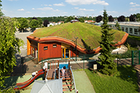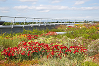 Canopia Naturapente : plaque précultivée pour toiture en pente. L’aspect végétalisé en toiture est immédiat comme pour la précédente solution. Le poids apporté à la structure rend la pose possible même sur bac acier et support bois.