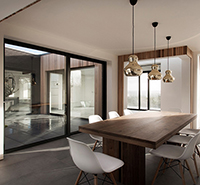 Avec 36 mm de face vue, le montant central accentue la sensation de légèreté, tout comme le galandage, qui confère une dissimilation discrète et élégante même pour les très grandes dimensions.