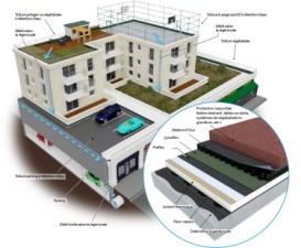 • la protection sanitaire en évitant la prolifération du moustique tigre sur les toitures avec dalles sur plots ou gravillons (le filtre en surface de Wateroof Duo empêche la dépose de larves dans l'eau stagnante des toitures à pente nulle)